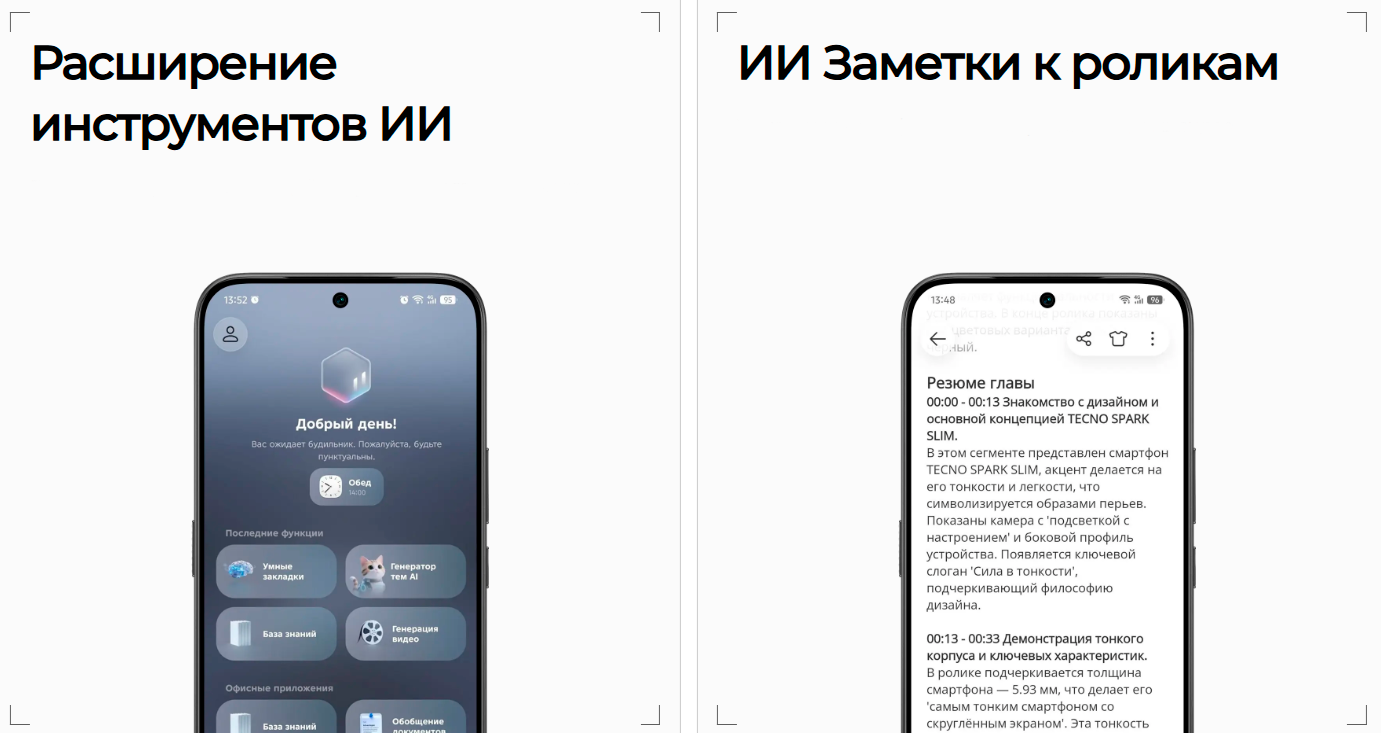 В устройстве реализованы современные AI-возможности: интеллектуальная обработка фото, портрет AIGC, а также функция 60-кратного AI-зумa. Дополнительно доступен мониторинг показателей здоровья и режим двойной съемки.